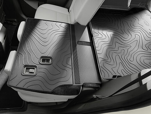 Спеціально розроблений для підтримки спинок складених задніх сидінь у відмінному стані при перевезенні потенційно небезпечних довгих і грубих предметів, а також для запобігання зісковзування вантажів у зазор між сидіннями та багажником. Напівжорсткий матеріал на 90% біологічній основі. Чохли на спинки сидінь другого ряду. Легка фіксація за допомогою липучки.