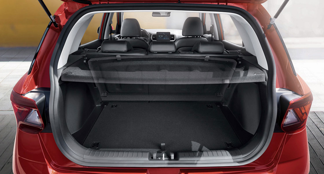 Привабливий інтер’єр кросовера та зручний салон забезпечують достатній простір для поїздки містом. Venue стандартно оснащено задніми сидіннями, що можуть складатися у співвідношенні 60/40 та у складеному стані утворювати рівну поверхню з багажним відділенням. Крім того, дворівнева багажна підлога та верхня полиця дозволяють зберігати речі якнайзручніше. Верхню полицю багажного відділення можна встановити вертикально у спеціально призначене місце за задніми сидіннями, що дозволить перевозити у багажнику високі предмети чи великогабаритний багаж.